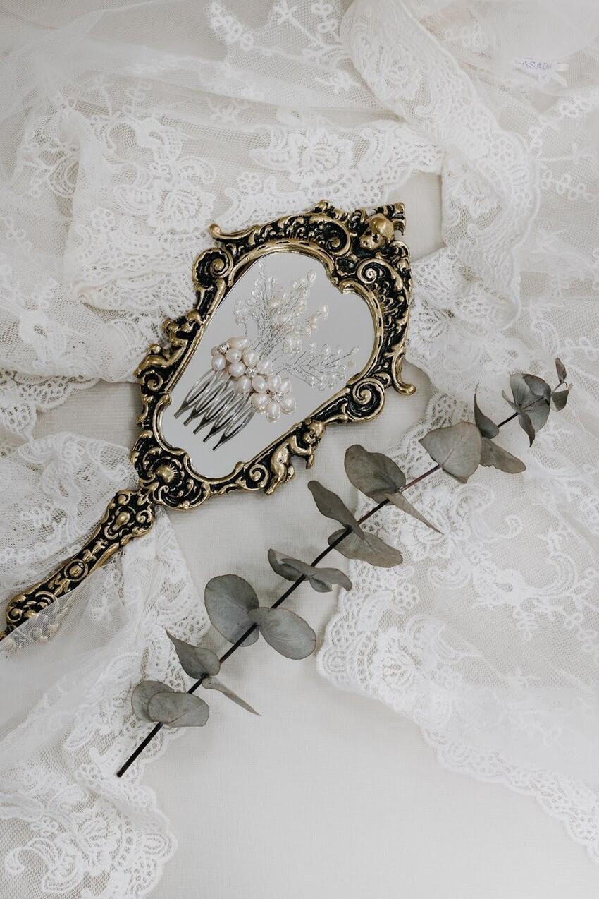 Pente modelado com pérolas naturais de água doce e cristais swarovski.